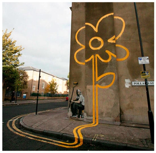 More meaningful impacts relate to the social sustainability to which Street Art contributes as part of ‘cultural branding and consumption issues’ []. From the perspective of urban regeneration and social sustainability, according to Colantonio and Dixon [], the inclusion of newer and ‘softer’ themes occur, such as happiness, social mixing, sense of place, participation, needs, and social capital, etc. Such themes are closely related to Street Art practices. Moreover, there are a few scientific studies in the literature that specifically deal with them.