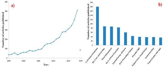 Evolution of research on the theme ‘WEEE and Logistic’; (a) by years and (b) by journal. Source: Authors.