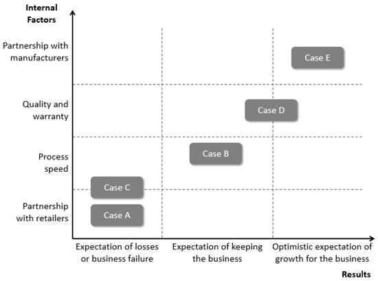 According to Yin [80], external validity can be considered as the analytical generalisation. In this article, the factors related to value generation can encompass other scenarios involving third-party companies, and direct their processes to improve overall results. This study summarises the lessons learned from a framework on the impact of quality and warranty, the processing time, and partnerships on the value generation by third-party companies. These three variables were identified in the literature, and the cases were analysed from this perspective, with the aim of relating them to value generation. The cases representing reverse logistics currently practiced in Brazil for WEEE are illustrated in Figure 1.