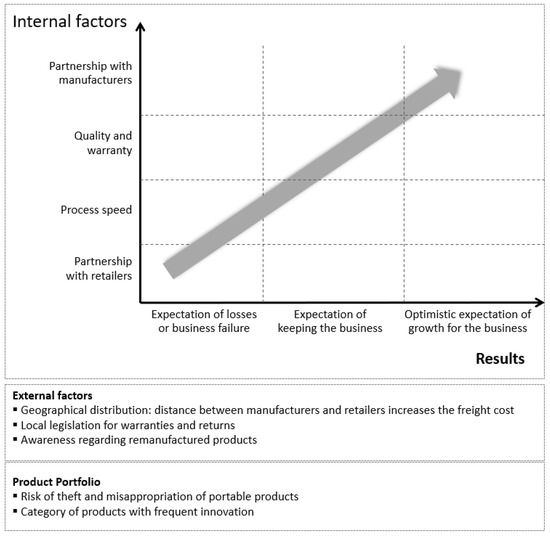 Li et al. [77] concluded that manufacturers must hire third-party companies to remanufacture products and add value, especially at the beginning of their life cycle. This would allow them to focus on the development of new products. Decisions regarding remanufacturing are a challenge for manufacturers, who can adopt three strategies: (1) not getting involved; (2) remanufacturing internally; (3) or authorising third-party companies to refurbish their products through partnerships. Not getting involved can lead to lower brand sales, given that some consumers prefer remanufactured and cheaper products. If the manufacturer remanufactures internally, there will be an improvement in the image of the products, which, in turn, would also benefit third-party companies. Thus, the costs of remanufacturing internally need to be analysed and compared with the benefits of partnering with third-party companies [78].