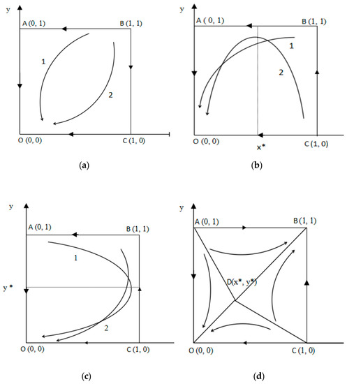 - Taylor, P.D.; Jonker, L.B. Evolutionary stable strategies and game dynamics. Math. Biosci. 1978, 40, 145–156. [Google Scholar] [CrossRef]