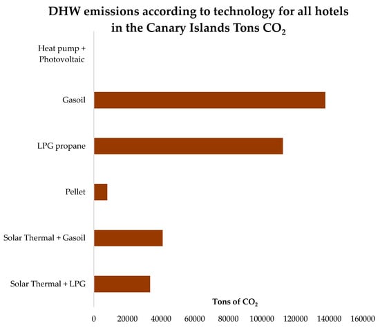 Summary of emissions due to DHW of the different technologies used for all the hotels of the Canary Islands.