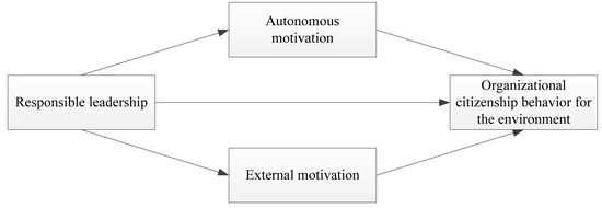 Responsible leadership promotes autonomous motivation, which in turn promotes OCBE. According to the theory of self-determination, an individual’s behavior is primarily influenced by autonomous motivation and extrinsic motivation, and the choices individuals make are based on their needs and their ideas with respect to the environment [40]. Therefore, employees who engage in OCBE primarily consider that engaging in environmental protection behavior can make them feel satisfied and that such behavior is rewarded, encouraged and supported. Graves et al. (2013) found that employee environmental protection behavior results from a combination of autonomous motivations and external motivations [41]. Environmental activities triggered by autonomous motivations are consistent with the individual employee’s values, goals and interests [32,42,43]. Therefore, even if the organization does not reward OCBE, employees will voluntarily engage in it. A study on student environmental protection behavior (e.g., reusing, recycling, purchasing environmentally friendly products or saving energy) revealed that the students’ autonomous environmental protection motivation is positively correlated with their environmental protection behavior [44,45]. Previous studies have also shown that employees’ autonomous motivations prompt them to engage in environmentally friendly behavior [46]. Through internalizing the values of responsible leadership and aligning themselves with the environmental goals of such leadership, employees enhance their autonomous motivation, which in turn further prompts the employees to participate in OCBE. In summary, we believe that responsible leadership prompts employees to engage in OCBE by increasing their autonomous motivation.