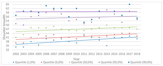 Average shoulder breadth of adult male population in Slovakia in years 2002–2018.