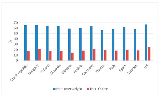 Regarding the weight of users, an increase in the average weight of the Slovak male population of more than 6 kg has been observed over the last 25 years. In 2017, the weight of more than 113,000 Slovak men was higher than 110 kg. Moreover, the weight of 11% of these men was more than 130 kg. Regional and national estimates of BMI in other European countries show that the situation is very similar (Figure 5) [72,73]. Following the BMI data, 400,000 men in Slovakia suffered from obesity and 90,000 suffered from severe obesity in 2017. The weight of approximately 46,000 men with severe obesity was more than 110 kg [74,75,76,77].