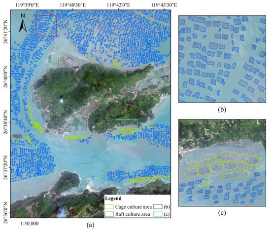 Marine aquaculture, particularly coastal aquaculture, offers an important potential for food production and the sustained development of many coastal areas, especially in regions with limited land, coastal space, and freshwater resources [1,2]. However, inappropriate planning of disordered and intensive coastal aquaculture may cause serious environmental problems and socioeconomic losses. The potential issues include water pollution [3,4], impacts on the surrounding sediment [5], damages to coral reefs, and biodiversity loss in coastal sea areas [6]. Globally, from 2000 to 2016, the total production of marine aquaculture has increased from 14.2 to 28.7 million tons [7,8]. As the largest producer, China has contributed to more than 50% of global aquaculture production since 1991 [8]. In China, a series of laws and regulations at national or local level, such as the Marine Environmental Protection Law, overall marine functional zonation, and nature reserve schemes, have been formulated for the management of coastal areas. However, comprehensive coastal management in China is still a big challenge. Thus, the monitoring and management of coastal aquaculture are imperative to ensure sustainable development of marine aquaculture industry.
