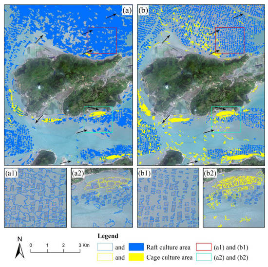 However, there are still some limitations of our proposed method. First, it is relatively time consuming for the ESP tool to obtain optimal SPs with the VHSR imagery, because it is based on iterative segmentation and calculation of LV for each scale. Second, uncertainties still exit in our multi-scale segmentation strategy, such as the selection of appropriate SP for land and sea area separation, and further research of fully automated methods is essential. Therefore, improvements and experiments in the selection of appropriate SPs and segmentation methods that can directly and accurately delineate the boundaries of different land cover classes are still required. Finally, our proposed method only applies to surface water cover and use detection. However, in some places, such as Shandong Province in northeast China, there are a few submersible cages.