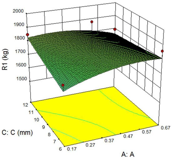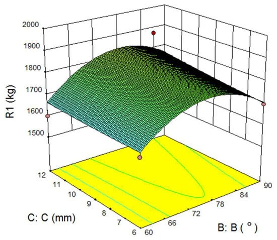 The effects of diameter-height ratio, cone angle, wall thickness and material density of beer fermentation cylinder on carbon footprint are shown in Figure 2, Figure 3, Figure 4, Figure 5, Figure 6 and Figure 7. Figure 2 shows the effect of diameter-height ratio and cone angle of beer fermentation cylinder and their interaction on carbon equivalent emissions. When the cone angle is 75°, the carbon equivalent emission in the initial stage increases with the aspect ratio. When the ratio of diameter and height is 0.42 (about 1:2.4), the carbon equivalent emission decreases with the increase of the two factors. Figure 3 shows the effect of the aspect ratio, thickness and their interaction on carbon equivalent emissions. When the wall thickness of fermentation cylinder is 9 mm, the carbon equivalent emission in the initial stage increases with the aspect ratio. When the aspect ratio is 0.42 (about 1:2.4), the carbon equivalent emissions decrease as the two factors increase. Figure 4 shows the effect of aspect ratio, material density and their interaction on carbon equivalent emissions. When the material density is 7.77 t/, the carbon equivalent emissions in the initial stage increase with the aspect ratio. When the aspect ratio is 0.42 (about 1:2.4), the carbon equivalent emissions decrease as the two factors increase. Figure 5 shows the effect of cone angle and thickness on carbon equivalent emissions. When the wall thickness is 9 mm, the carbon equivalent emissions in the initial stage increase with the cone angle. When the cone angle is 75°, the carbon equivalent emissions decrease as the two factors increase. Figure 6 shows the effect of cone angle and material density on carbon equivalent emissions. When the material density is 7.77 t/m3, the carbon equivalent emissions in the initial stage increase with the cone angle. When the cone angle is 75°, the carbon equivalent emissions decrease as the two factors increase. Figure 7 shows the effect of wall thickness and material density on carbon equivalent emissions. When the material density is 7.77 t/m3 the carbon equivalent emissions in the initial stage increase with the wall thickness. When the wall thickness is 9 mm, the carbon equivalent emissions decreases as the two factors increase.