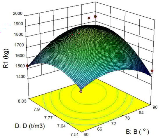 The carbon footprint at the raw material acquisition stage obtained by the above calculation is taken as the response value for the experimental design and the Design Expert 8.0.5 software (Stat-Ease, Inc, Minneapolis, American) is used for analysis. The regression formula of carbon footprint of fermentation cylinders at the stage of raw material production with design parameters A (ratio of diameter and height), B (cone angle), C (thickness) and D (material density) is obtained as follows: