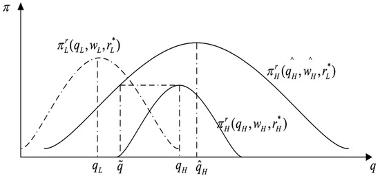 The parameter represents the risk-adjusted substitution cost to borrow from the IFI, and it is obvious that the optimal order quantity varies with the type of the SME. Hence, we can denote as . Since and , given Equation (16), it is easy to show that . Given , it is clear that .