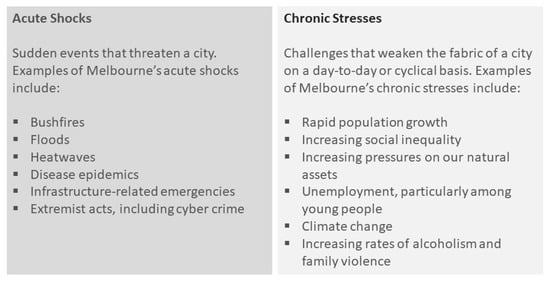 Shocks and Stresses acknowledged in the Resilient Melbourne Strategy.