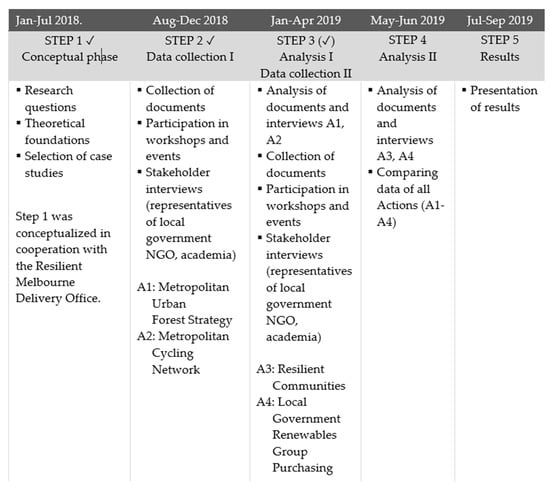The research project Urban Resilience in Action is conducted under the lead of the professorial City of Melbourne Chair in Resilient Cities, whose role was initiated as part of the Resilient Melbourne Strategy (RMS). Jointly funded by the City of Melbourne and the University of Melbourne, the chair is considered a connector between Resilient Melbourne, academia and other stakeholders in Metropolitan Melbourne. Apart from leading and coordinating academic work, the chair’s role is to actively be participating in resilience-building actions and co-shaping related processes. The close interactions with the RMDO are sought to be stimulating for new ways of urban resilience thinking and implementation in Melbourne and internationally [18].