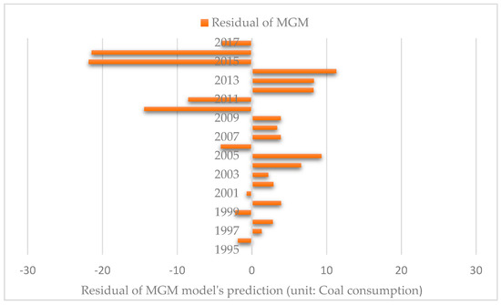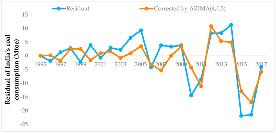 3.3. The Application of Combined MGM-ARIMA Model in Forecasting India’s Coal Consumption