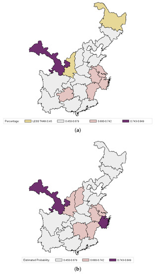 Figure 4b shows the expected value of estimated probability of households working outside their lands based on our estimation. Since we only present the provincial average of our estimation,