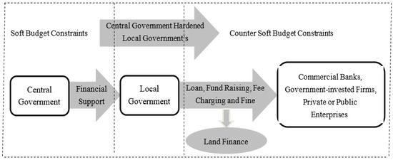 At the institutional level, the existing research mainly focuses on fiscal decentralization and the political system. Moesen and Cauwenberge (2000) synthesized data from 19 OECD countries (1990–1992) to analyze hard budget constraints empirically in comparison with soft budget systems. They concluded that the actual level of public output and the amount of idle resources under hard budget constraints are lower than those under soft budget systems. In fiscal decentralization, local governments tend to enlarge the organizational budget through borrowing and then easily trigger soft budget constraint behavior [32]. Upon conducting a case study in China, Liu (2012) corroborated that fiscal decentralization has stimulated local government officials to borrow illicitly, seek windfall profits, obtain rent from land, make external donations, and perform other soft budget constraints. At the political level, existing research holds that politicians’ demand for political promotion is closely related to soft budget constraints [33]. Tjerbo and Hageon (2009) observed that soft budget constraints meet the short-term interest-seeking needs of political bureaucrats; hence, governments tend to use this behavior to obtain additional political benefits during the election period [34]. Qian and Roland (1998) conceived of a federal structure as a three-level hierarchy and argued that federalism can help to harden budget constraints through regional competition with the assumption that governments are in pursuit of maximizing welfare. Therefore, soft budget constraint theory forms an appropriate theoretical underpinning to understand the contributing factors and mechanism of China’s land financing.