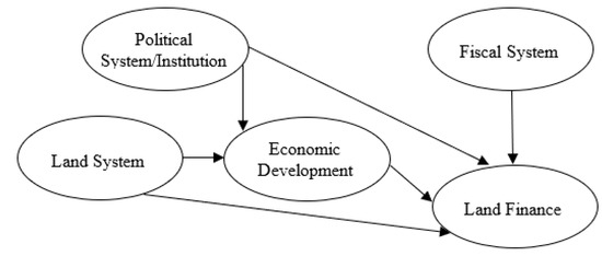 According to the studies conducted by local and international scholars on land finance and the relationships between contributing factors (Table 1), the economic development, fiscal system, land system, and political system have a positive effect on land finance. Meanwhile, land and political systems have a positive effect on economic development. Therefore, several hypotheses are proposed in this study.