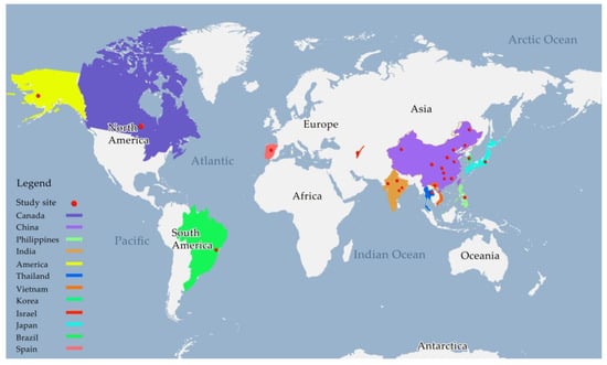 From the 72 studies, data listed in tables were obtained directly, whereas, data presented in. figures were extracted using the “Getdata Graph Digitizer, Version 2.26” software (Version 2.26: Getdata Graph Digitizer, Fedorov S, Krasnoyarsk, Russia). A total of 260 observations from 72 field studies were collected for this meta-analysis. Other related information including the location (longitude and latitude), mean annual precipitation, annual mean temperature, climate regimes, pH, cropping systems, crop species, soil types, N fertilizer application, and residue returning duration were obtained from the selected studies. More detailed information regarding these published papers is represented in Supplementary Table S1.