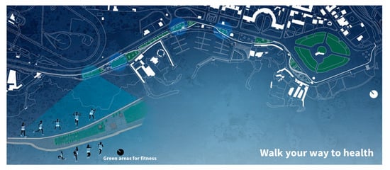 On the double criterion of usability/attractiveness, it would be possible to make the waterfront of Livorno a plural identity, a place from polysemy, so that it is not a line but is a network of places, functions, grafts, and reconnections between the coast and the city, between port and urban activities, with additional cultural and recreational functions. It could, therefore, be designed to upgrade the existing structures and services, by extending the existing the small marina, which would also be an opportunity to restore the compressed areas, from the environmental point-of-view, to the construction of new walkways on the existing cliffs, equipped with parking areas. In the design area of the project, attention has been focused on the possibility of exploitation in summer and in winter, by citizens and tourists, who can keep fit by practicing outdoor motor activity. The waterfront of Livorno is, thus, an excellent place to do these daily activities, thanks to the multi-level routes, areas for running and cycling without interference, and areas where you can also practice a slow walk, encouraged by the presence of the piers, the panorama, and the various services arranged along the route. These activities can help to stimulate the subjective well-being (psychological and physical) of the human, especially so, in the cases of older adults [,].