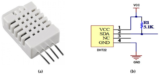 (a) DHT22 temperature and relative humidity sensor; (b) Schematic sensor design.