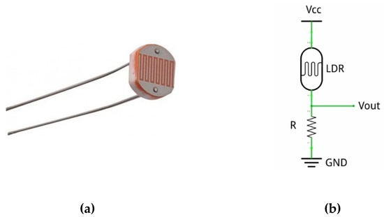 (a) Light dependent resistor (LDR) photo-resistor; (b) Schematic sensor design.