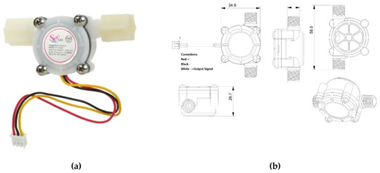 (a) YF-S402 water flow sensor; (b) Schematic sensor design.