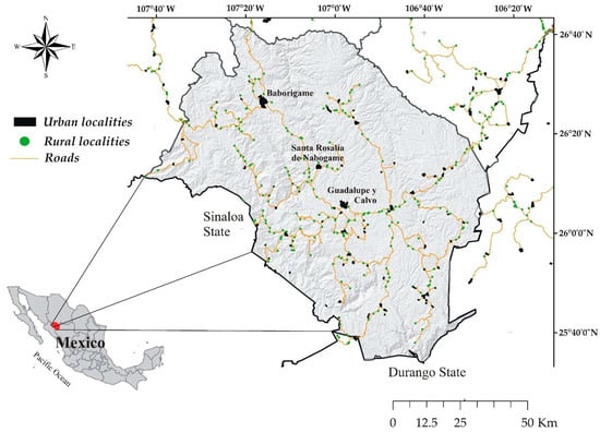 Location of the study area in the Guadalupe y Calvo municipality, Chihuahua, Mexico.
