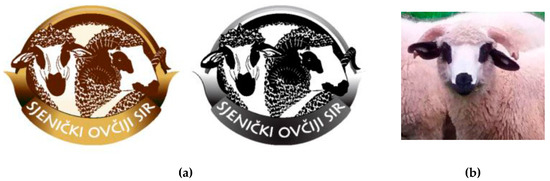 Even though Serbia is a Southeastern European country and is expected to share its orientation with other southern countries in terms of DO certification, the modest number of DOLs leads to an opposite conclusion. There are 71 registered products with a DOL in Serbia, encompassing 57 domestic and 14 foreign products [36]. There are no Serbian products in any of the three DO categories registered in the EU [37]. Of the 57 domestic-registered PDO products, 12 belong to the cheese category, constituting, along with meat, the most represented food category. Sjenica cheese is produced either from cow or sheep milk and, accordingly, two types of this cheese have been labelled. The registered trademark [38] is presented in Figure 1a, the stylized heads of the sheep and the rams of the typical race for Sjenica (Figure 1b)—recognizable by the expressive streaks on the snout, eyes, and ears.