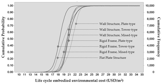 Cumulative probability of life cycle embodied environmental cost.