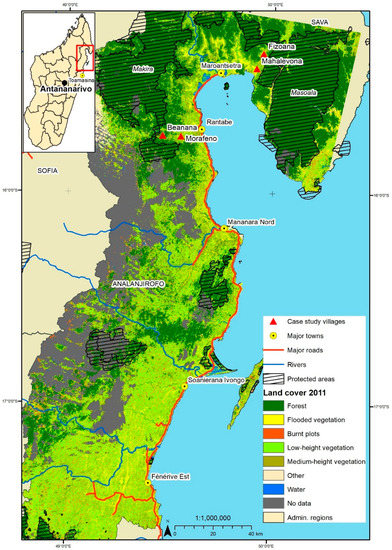- Zaehringer, J.G.; Eckert, S.; Messerli, P. Revealing Regional Deforestation Dynamics in North-Eastern Madagascar—Insights from Multi-Temporal Land Cover Change Analysis. Land 2015, 4, 454–474. [Google Scholar] [CrossRef]