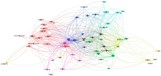 Figure 7 represents the existing network of collaboration between the countries of different authors sharing the same publication. This figure was extracted from the software VOSviewer v.1.6.6., which uses the information obtained from the Scopus search and which can be downloaded as a .csv file.