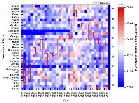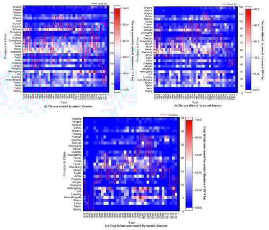 | Natural disaster datasets | Crop-covered area a (104 ha) | 1978–2014 | Website of the Ministry of Agriculture of China (http://zzys.agri.gov.cn/nongqing.aspx), Chinese Statistical Yearbook, Database of China’s social and economic development (http://tongji.cnki.net/kns55/index.aspx) |
