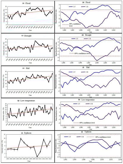 - Guan, Y.; Zheng, F.; Zhang, P.; Qin, C. Spatial and temporal changes of meteorological disasters in China during 1950–2013. Nat. Hazards 2015, 75, 2607–2623. [Google Scholar] [CrossRef]