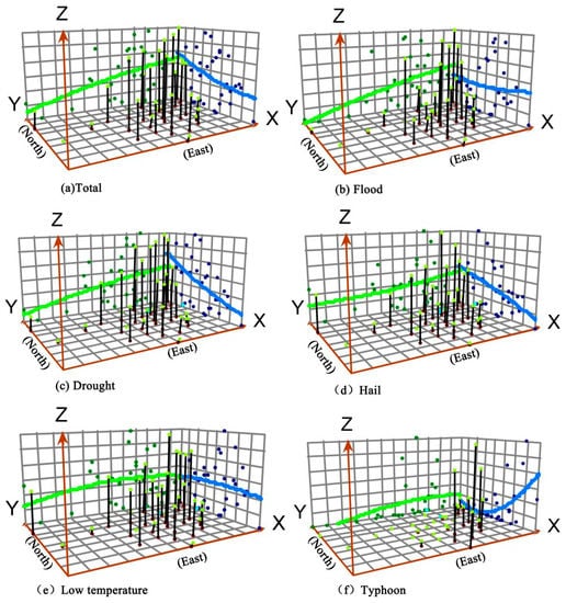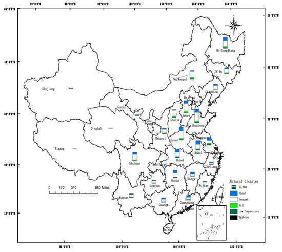 3.2.2. Spatial Distribution of Natural Disasters in China