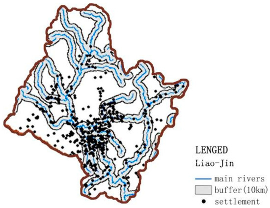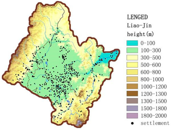 The Liao–Jin period was the third peak of settlement development (Figure 4). It was also the highest peak of the development of all the ancient settlements. The Liao, Jin, and Yuan dynasties built a large number of settlements in the rule of northeast China for more than 400 years. These settlements were mostly distributed along the main rivers and the plain areas washed out by the rivers, especially in the Songnen Plain, the largest plain area in the basin.