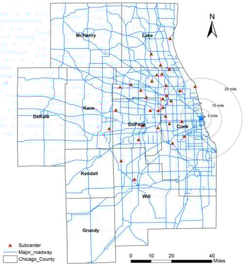 - McMillen, D. Employment subcenters in Chicago: Past, present, and future. J. Econ. Perspect. 2003, 2Q, 2–14. [Google Scholar]