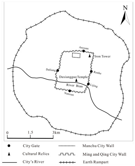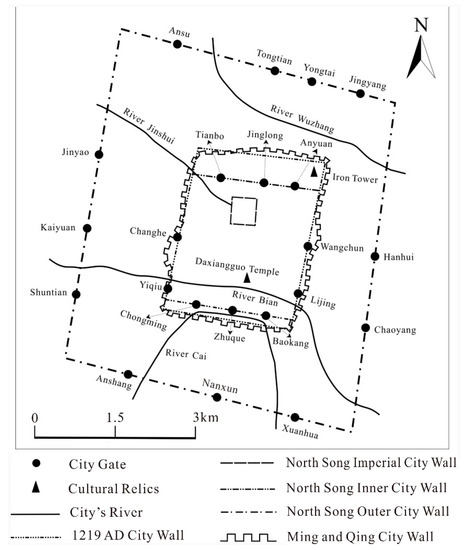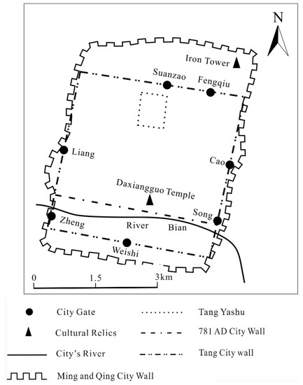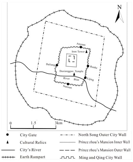 - Zhou, B.Z.; Xu, B.Y. Ancient City of Kaifeng; Henan University Press: Kaifeng, China, 2011. [Google Scholar]