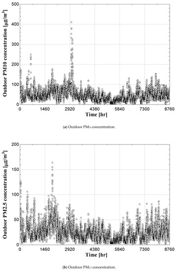 - Marsik, T.; Johnson, R. HVAC air-quality model and its use to test a PM2.5 control strategy. Build. Environ. 2008, 43, 1850–1857. [Google Scholar] [CrossRef]