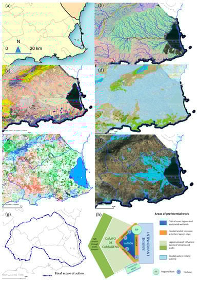 At the operational level, the scope of action of this new regulatory framework and preferential areas of action where the necessary measures and investments will be implemented have been agreed upon. For this, a GIS analysis was developed from a multi-parametric approach at the administrative, hydrological, geological, hydrogeological, land use, and flood risk levels. The criteria agreed upon to achieve both results through the GIS participatory mapping process have had various levels of qualified consensus. At a geographical level, it has been observed that the scope of administrative action cannot be limited to municipal scope, since several municipalities are affected, and it is not considered necessary to go beyond the regional scope. In addition, the municipalities affected are not only the coastal municipalities, since at the hydrological level the area of influence of the lagoon extends to several interior municipalities. This issue is repeated both at the geological level, as well as at the risk of flood levels and as hydrogeological level, with the last of these being the biggest determinant of the three. Hydrological and hydrogeological analyses both reveal a strong correlation with the phenomenon of nitrate contribution to the lagoon from intensive agriculture even though a consensus has not been reached on which of these routes is the predominant route.