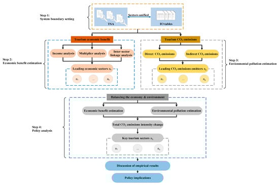 The third step of the analysis process is to calculate the direct and indirect environmental effects based on the results of economic analysis. In this step, the combined TSA and IO model is adopted. Based on the tourism income and IO data, the direct and indirect CO