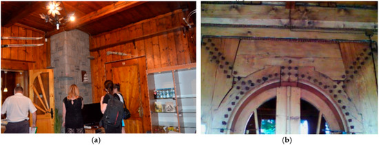 One of the tasks of modern civilisation is the protection of cultural heritage by preventing the degradation of its elements and ensuring proper conservation, development and popularisation of its values. An important resource of cultural heritage are historic buildings, which in contemporary society have a chance of survival if they are recognised by the public and have a useful function. In the literature on the subject, there is the concept of the so-called adaptability of the building, i.e., a set of various features and properties determining the simplicity of the adaptation of such a building for new utility functions [1,2,3]. Many factors may have an influence over the adaptive potential of historic buildings, such as the type of architectural and structural system; the type of load-bearing structure; the technical condition of the building; the quality and the physicochemical and mechanical properties of materials used to build them; and the possibility of these materials for being re-used in the adaptation process. In order to assess the adaptive capacity of the building, it is necessary to conduct a series of specialised tests of its building material as well as and evaluation of its historic value. [1]. Objects of historic regional architecture in Poland are located in Podhale in the southern part of the country (see Figure 1a) and are usually built in the traditional brick-and-wood style (Figure 1b). These buildings are a specific type of object whose adaptive capacity for new functions is restricted due to their limited ability to meet requirements such as energy efficiency and comfort of use [4].