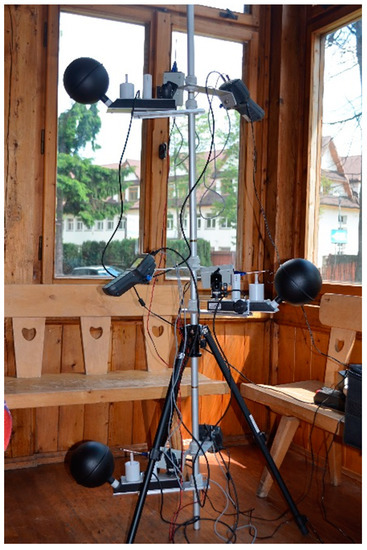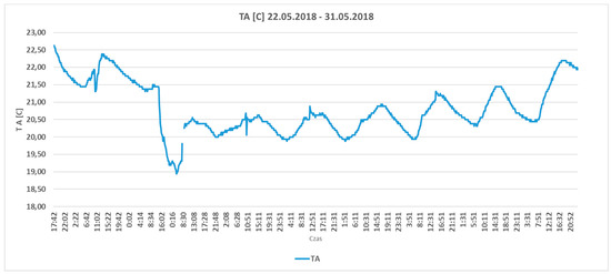 The methodology for determining thermal comfort is based on PN-EN ISO 7730 [27] and the measurement methodology is based on PN ISO 7726 [30]. The tests were performed using measuring equipment that meets standard [30]. The measuring device was a microclimate meter (Figure 9). The tests were conducted in the period 22 May 2018 to 31 May 2018. The measuring device was located in the guest room of the ‘Stara Polana’ hostel. Thermal insulation of clothing was determined based on the standard PN-EN ISO 9920:2009 [40]. Insulation of clothing was determined as the value for the transitional season of clothing worn at home Iclo = 0.7 (clo).