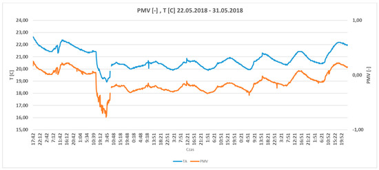 On the basis of measurements, thermal comfort parameters were calculated from Equation (2).