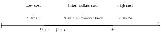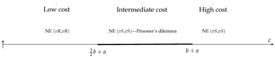 The third factor (c) (We assume since it represents an extra-cost between a standard products and a SR product, when the former is cheaper than the latter. Alternatively, it could be assumed that . However a negative c makes the problem trivial. Our theoretical analysis hence applies to the more frequent and reasonable cases in which CSR adds extra costs.) measures the cost of voting with the wallet, namely the extra cost, if any, paid by the consumer when choosing a product of a responsible company vis-à-vis a product of comparable quality and lower price of another company which falls below the responsibility standards of the former. We as well assume for simplicity that for all (where is the income of player i), that is, all players’ decisions to vote or not for SR products depend only on utility considerations and are not constrained by lack of income.