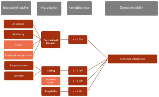 Initially, customer satisfaction had eight dimensions: tangibles, responsiveness, empathy, assurance, reliability, access, financial aspect, and employee competences.