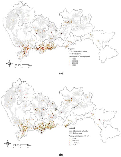 - Liu, Q.; Wang, J.; Chen, P.; Xiao, Z. How does parking interplay with the built environment and affect automobile commuting in high-density cities? A case study in China. Urban Stud. 2017, 54, 3299–3317. [Google Scholar] [CrossRef]