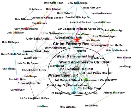 In addition, the Center for International Forestry Research (CIFOR), marked with a red star in Figure 11, is also an impressive active contributor to SL research. It has already conducted collaborative scientific works on SL with 16 different institutions, including the Agricultural Research and International Cooperation Organization (CIRAD), the Australian National University, and the University of Queensland.