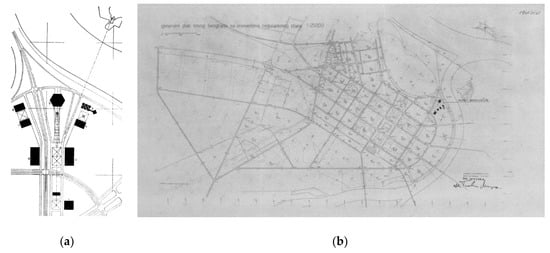 Leko devised the plans for the quay and the neighbourhood in his capacity of municipal architect, but they were never executed. They were replaced with another plan, developed by the Sewage Department of the Municipality of Belgrade—although this one was not realised either. Superimposed versions of these plans (Figure 3b) speak to the constant revisions and alterations in the plan’s conception, the various relationships towards the riverbank, the uncertainty of effect of the decisions passed and the hesitation in their realisation. The concept of the neighbourhood ultimately produced by the Municipality annulled Leko’s ideas, which were devoted to the achievement of the economy of building, possibility of mixed social housing and experimentation with city quarters [].