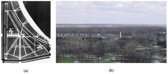 There are numerous definitions of a landscape. According to one of them, it is: “a portion of the earth’s surface that can be comprehended at a glance” [] (p. 8). Another writer states: “The meaning of ‘landscape’ shifts by the context and by the background of the users” [] (p. 13). The human role in landscapes is dissimilar to that of other species, precisely due to the imprint of cultural patterns that characterise human activity. A new cultural landscape emerges through the activity of cultural groups in a natural setting []. Dealing with the study of theory and practice in relation to the concept of landscape in the 20th century, John Wylie starts his book with the following statement: ‘Landscape is tension’ [] (p. 1). Dialectical pairs of terms: ‘proximity-distance’, ‘observation-inhabitation’, ‘eye-land’ and ‘culture-nature’ are the contrasts that create tension and define the critical view of a landscape. Within the same theoretical discourse, the concept of landscape is explained by studying the dialectic pair of terms: ‘production-representation’, accentuating the existence of the mutual dependency between the manner in which a certain landscape is presented and production of the social, spatial and aesthetic values that can be perceived in that landscape [,]. In the past decades in particular, landscape was established as a means of mediation, on the basis of which the position and role of all social levels of a society can be recognised.