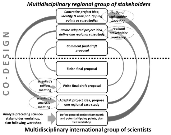 Overall, our transdisciplinary approach was highly successful. During the above co-creation process, we managed to generate a common terminology on the topic of a planned project, and we identified, by means of an iterative process and the application of a structured ranking procedure, a case study for research about tipping points which was of societal relevance, scientific interest, and of transboundary importance.