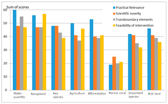 The topics ‘Water quantity’, ‘Rangeland’ and ‘Key species’ were also ranked consistently high with respect to transboundary elements. This was a reassuring confirmation of our own selection based on whether or not the topics were raised in all three workshops.